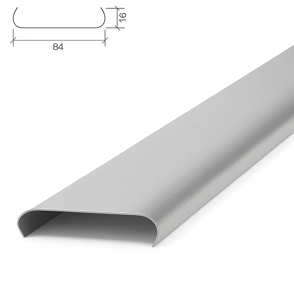 A84A металлик — алюминиевая потолочная рейка шириной 84 мм и шагом 100 мм. Цвет покрытия имитирует металл — практичное и универсальное решение для современных интерьеров. Применяется в бизнес-центрах, офисах, производственных и административных помещениях. Открытый монтаж на гребёнку обеспечивает ритмичную и лёгкую потолочную линию.