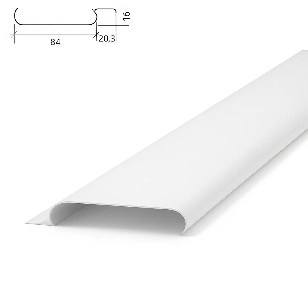 A84AC белый — алюминиевая потолочная рейка с шириной 84 мм и шагом установки 100 мм. Модель выполнена в классическом белом цвете и оснащена системой закрытых стыков. Обеспечивает ровную, цельную потолочную поверхность без зазоров. Идеальна для офисов, учреждений, ТЦ и деловых пространств.