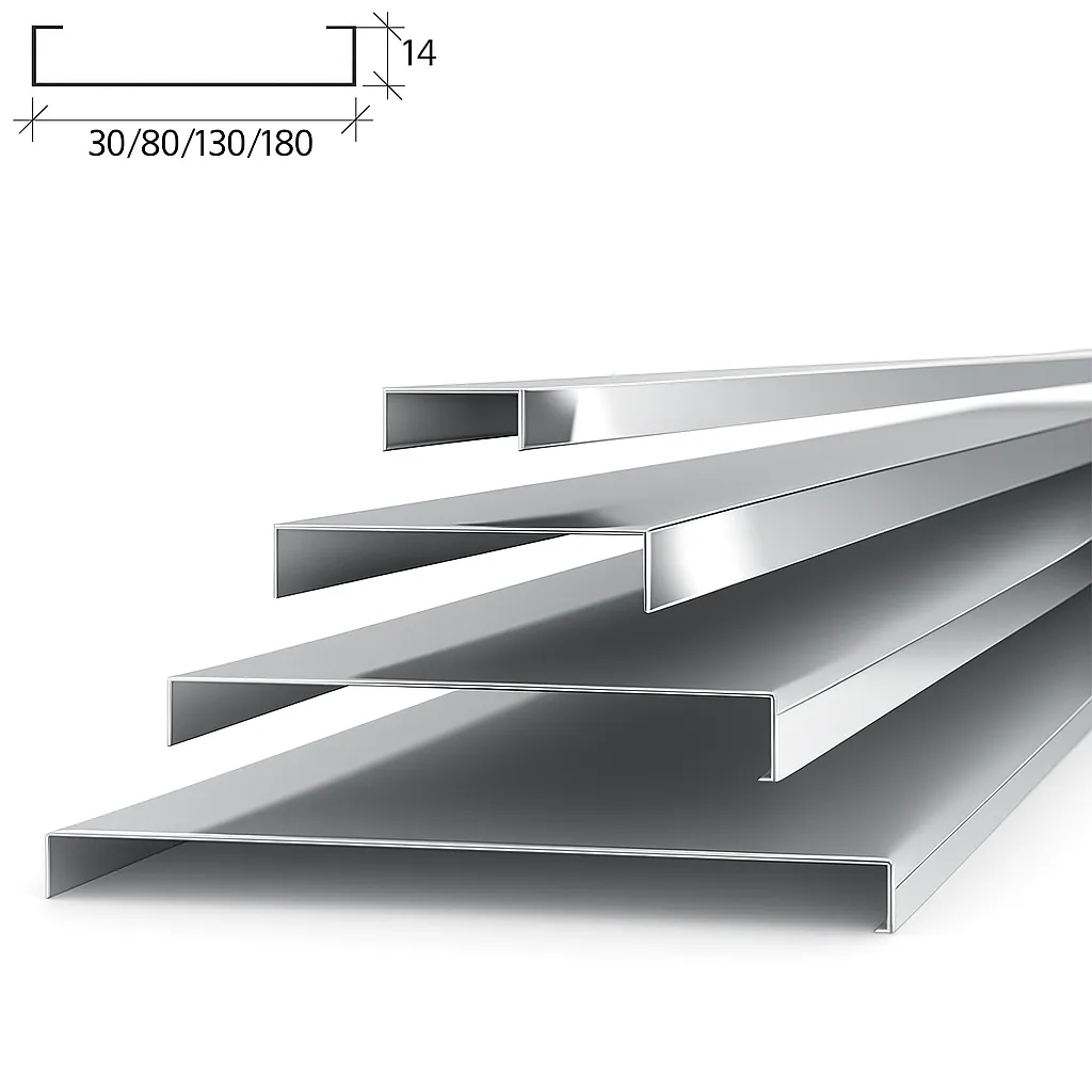 Албес A80SV суперхром — это алюминиевая потолочная рейка с прямоугольным сечением 80×14 мм, с зеркально-гладким покрытием «суперхром». Такая отделка придаёт интерьеру премиальный и визуально расширяющий эффект. Используется в административных и коммерческих помещениях с дизайнерскими задачами.