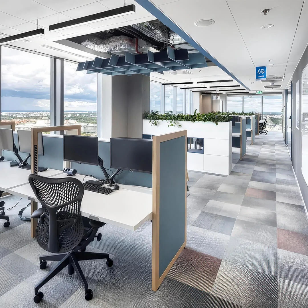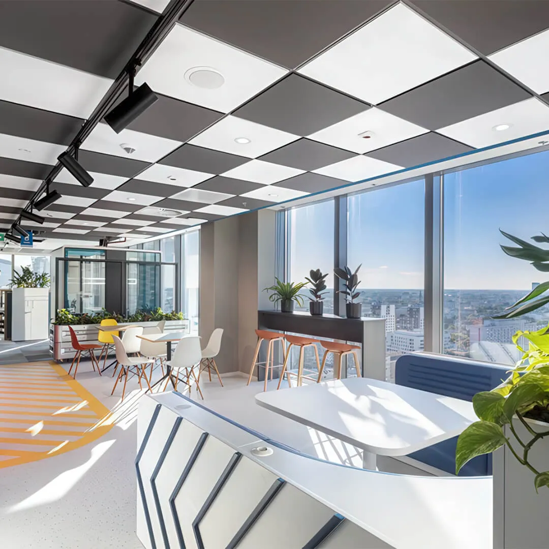 - Системы для открытых пространств: подвесные панели и облака, которые эффективно снижают шум в больших помещениях.